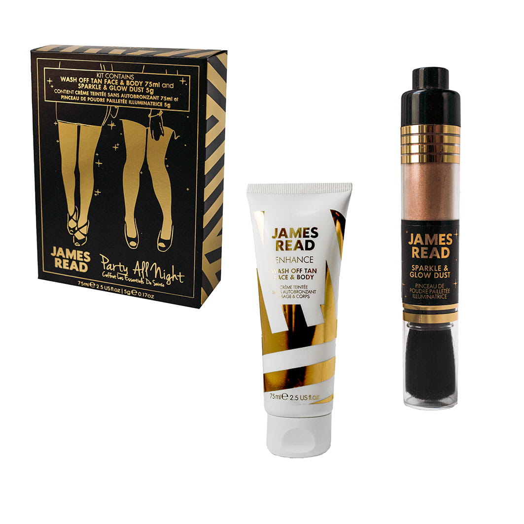 ZESTAW PARTY ALL NIGHT to natychmiastowy efekt WOW. Idealny kompan każdej udanej imprezy. Zawarte w nim 2 produkty otulą skórę zmywalną, złocistą opalenizną, a odbijające światło drobinki natychmiast ją rozświetlą. Błyskawicznie pojawiający się kolor, który możesz zmyć w dowolnym momencie. Teraz jesteś gotowa zabłysnąć wszędzie, gdzie się pojawisz.